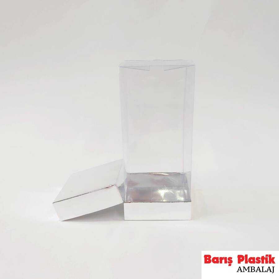 Asetat Gümüş Pencereli kutu 9x9x20 5 Adet